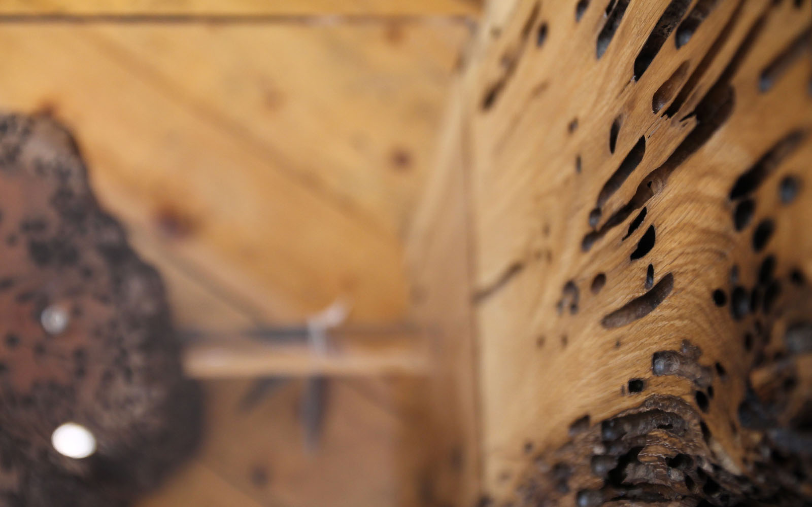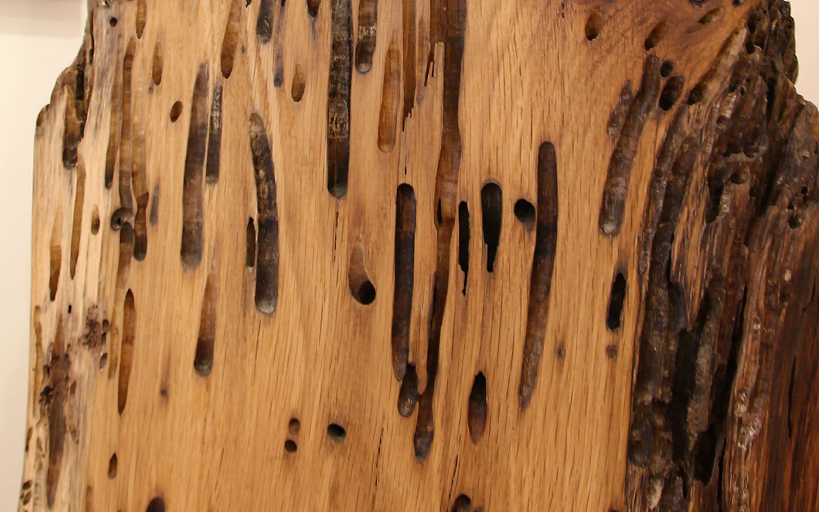 E' un legno di rovere accuratamente selezionato e trattato, che mostra segni profondi, unici ed inimitabili. Queste modellazioni sono opera della teredine, un particolare mollusco che vive nelle acque lagunari.