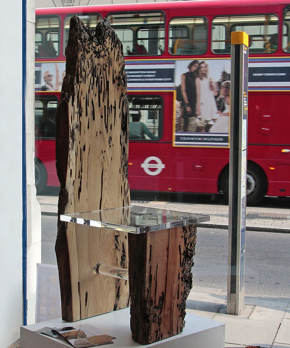 L'irregolarità formale dello schienale si contrappone all'essenzialità contemporanea della seduta. La sua trasparenza