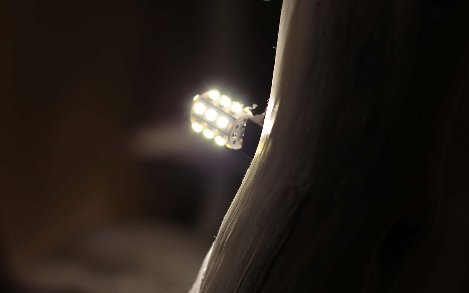 Le sue forme sinuose modellate dal vento sono valorizzate dalle luci a LED applicate